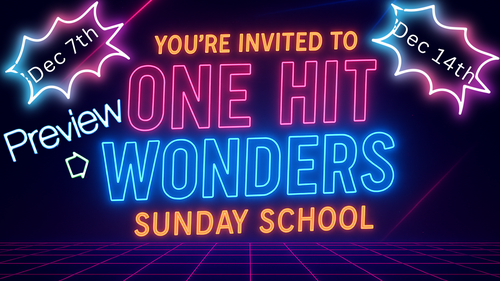 Have you been curious about our Sunday school? Or maybe you would like to attend one. Well, here is your chance. December 7th & 14th One Hit Wonders invites adults to get a glance at what we teach and if it's something you'd like to attend on a regular basis.